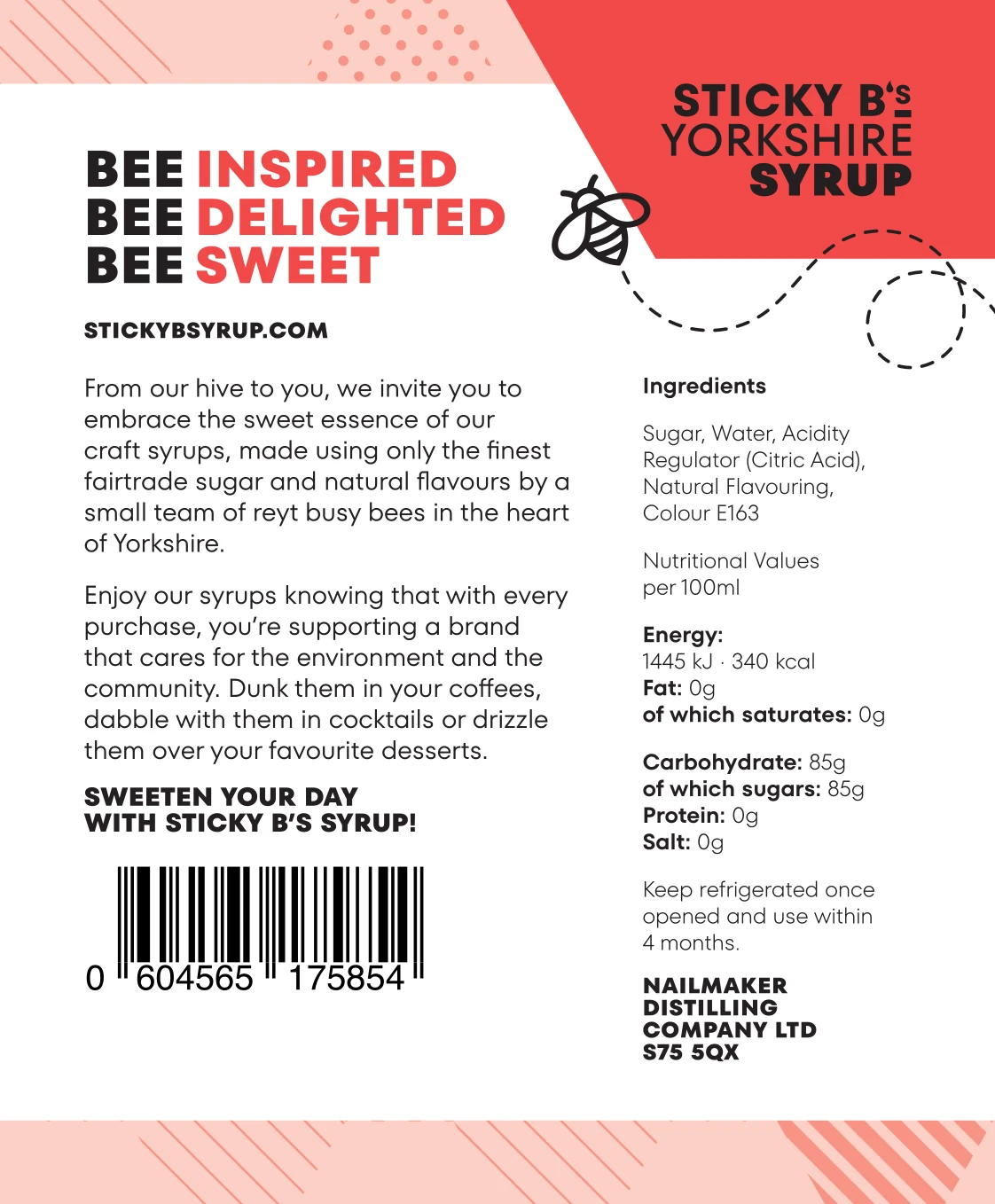 Sticky B’s classic syrups are lovingly crafted in Yorkshire in small batches. Made with Natural Flavourings, Fairtrade Sugar and Crystal Clear Spring Water, our syrups really are the bee’s knees.